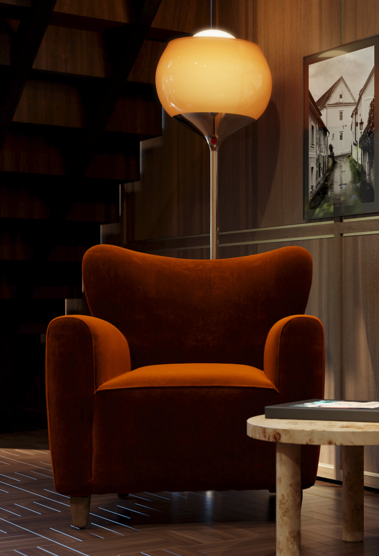 With its cozy proportions and enticing curves, this classic armchair modeled by archviz3d with character.